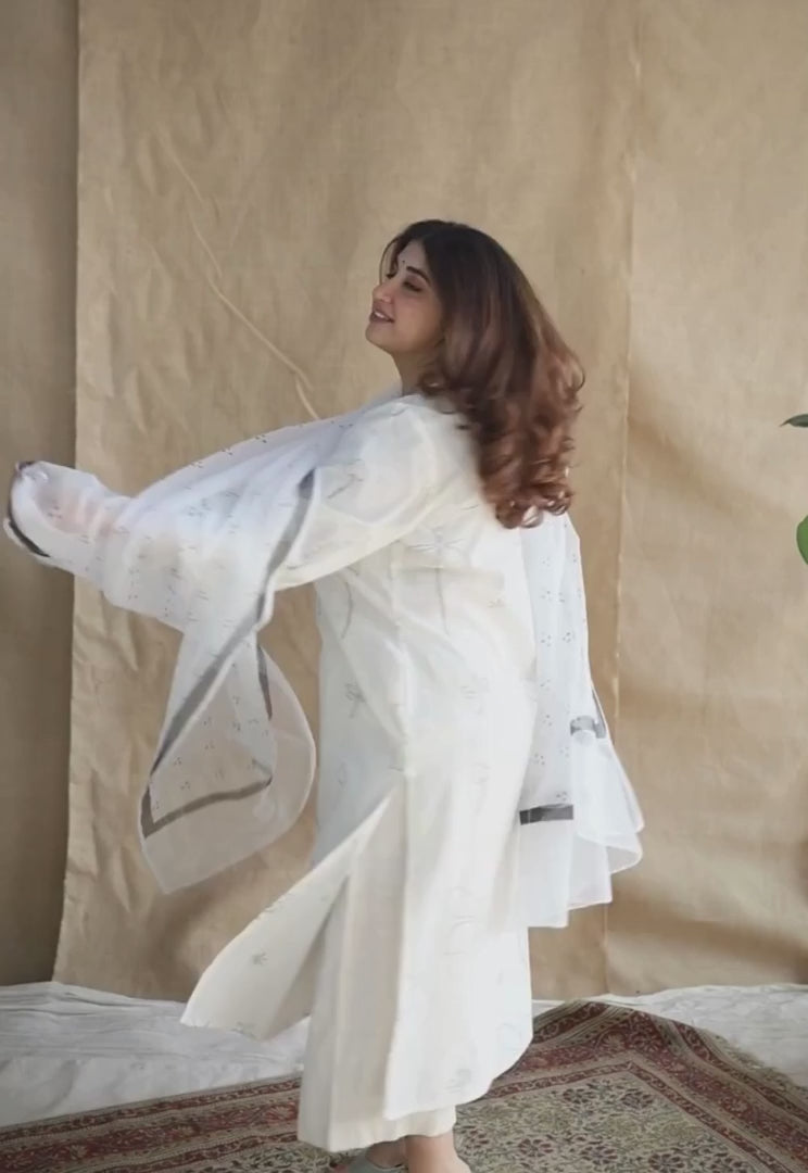 Felza Dabu Slub Cotton Hand Embroidered Kurta