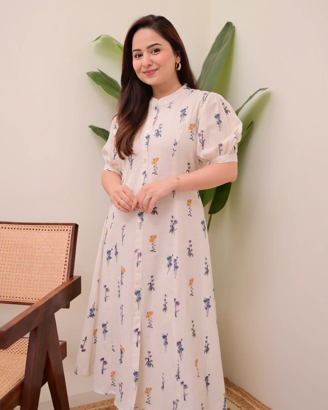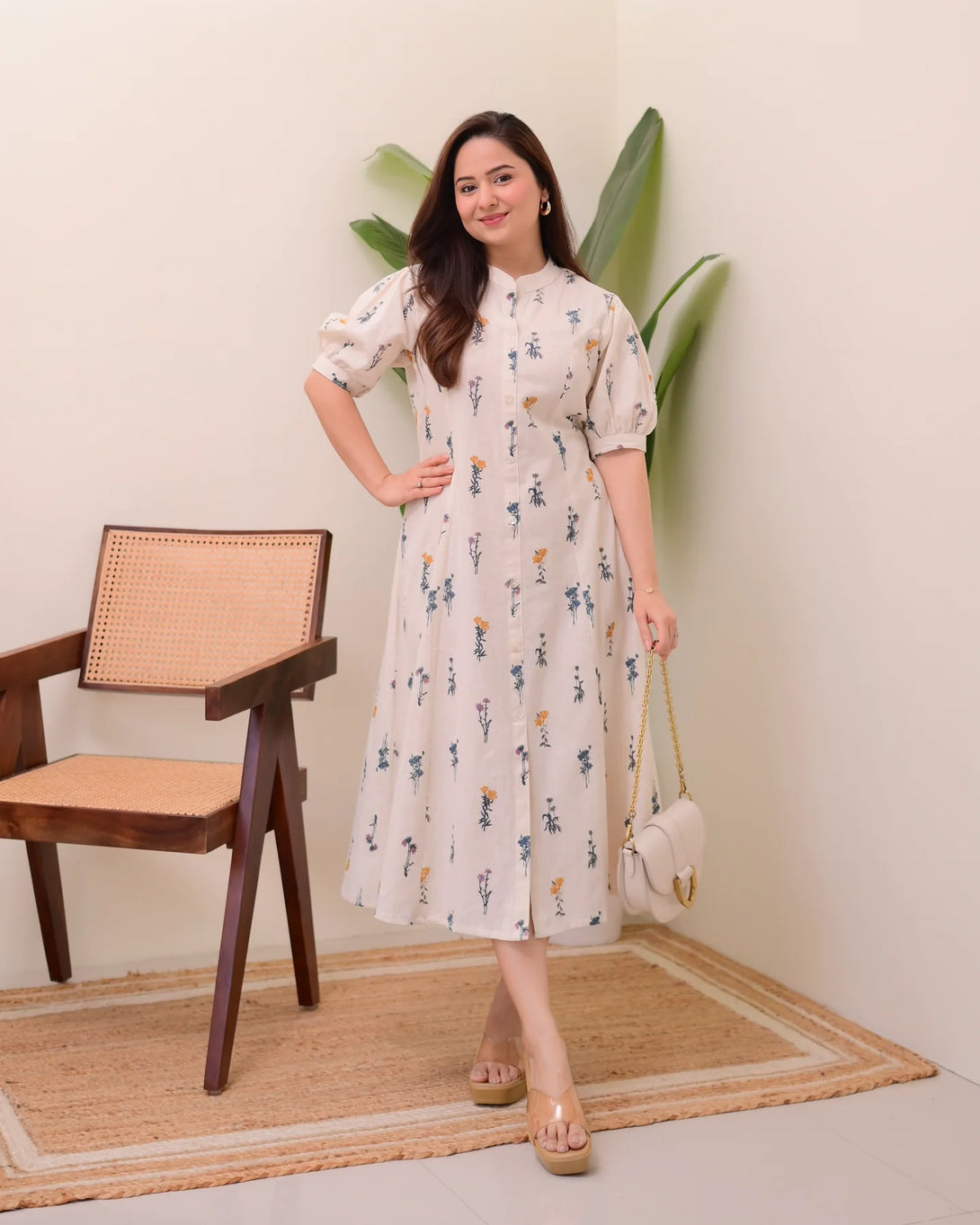 It is decorated with beautiful buttons and amazing floral prints. A must’ve for your daily rituals. You can also pair it up with pants.